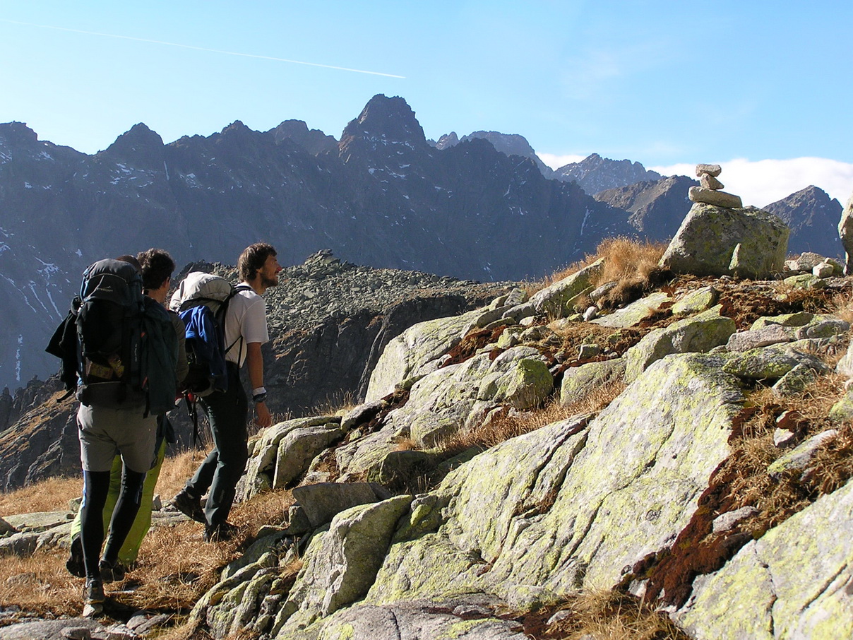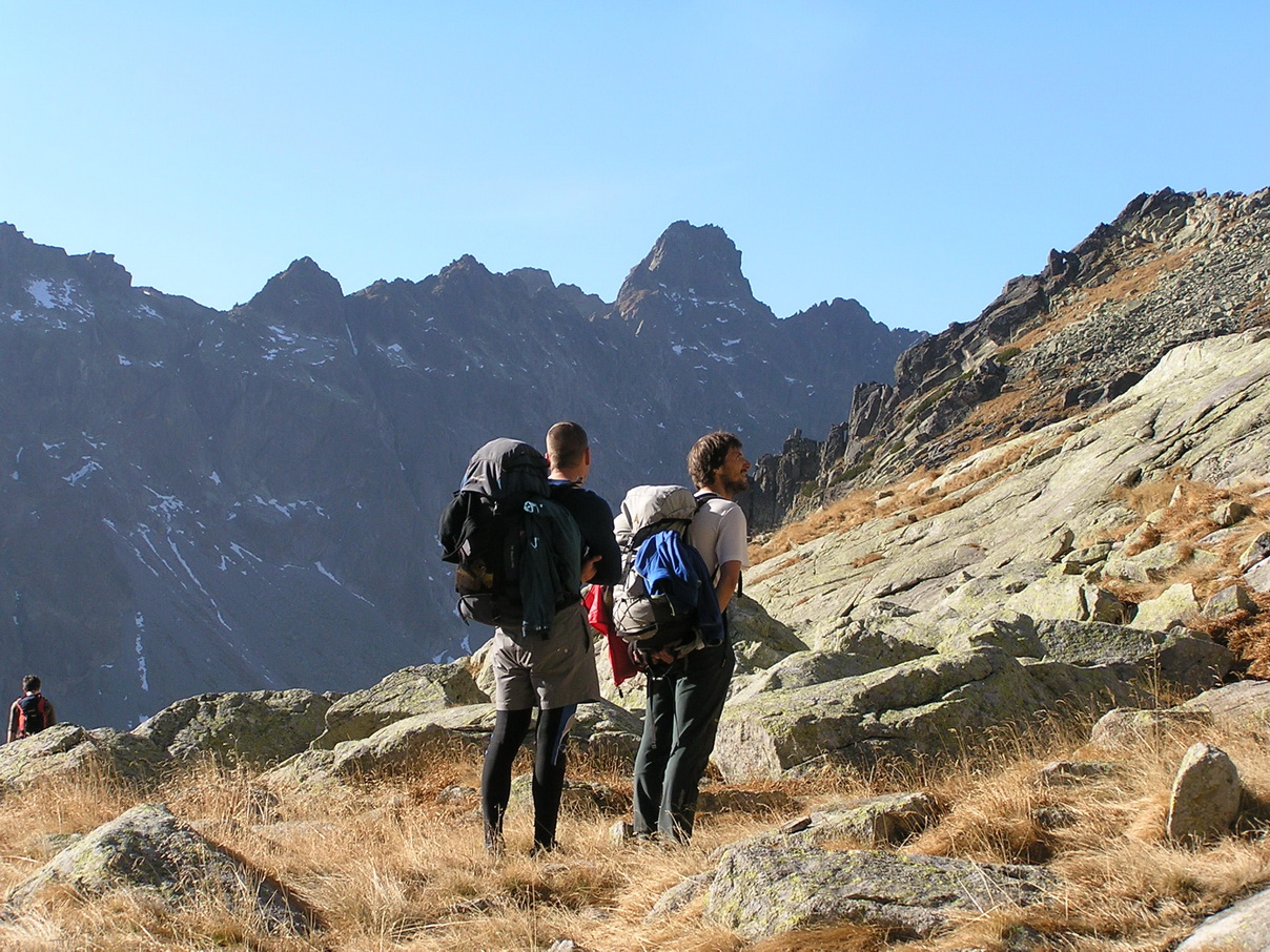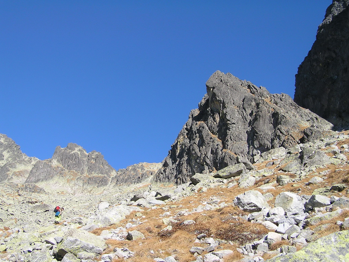 Babie leto v Tatrách. Hore je teplejšie ako dole. Vo Veľkej Studenej je ráno tieň a chlad. Pri kráčaní do kopca s batohom plným lezeckého výstroja to nevadí.