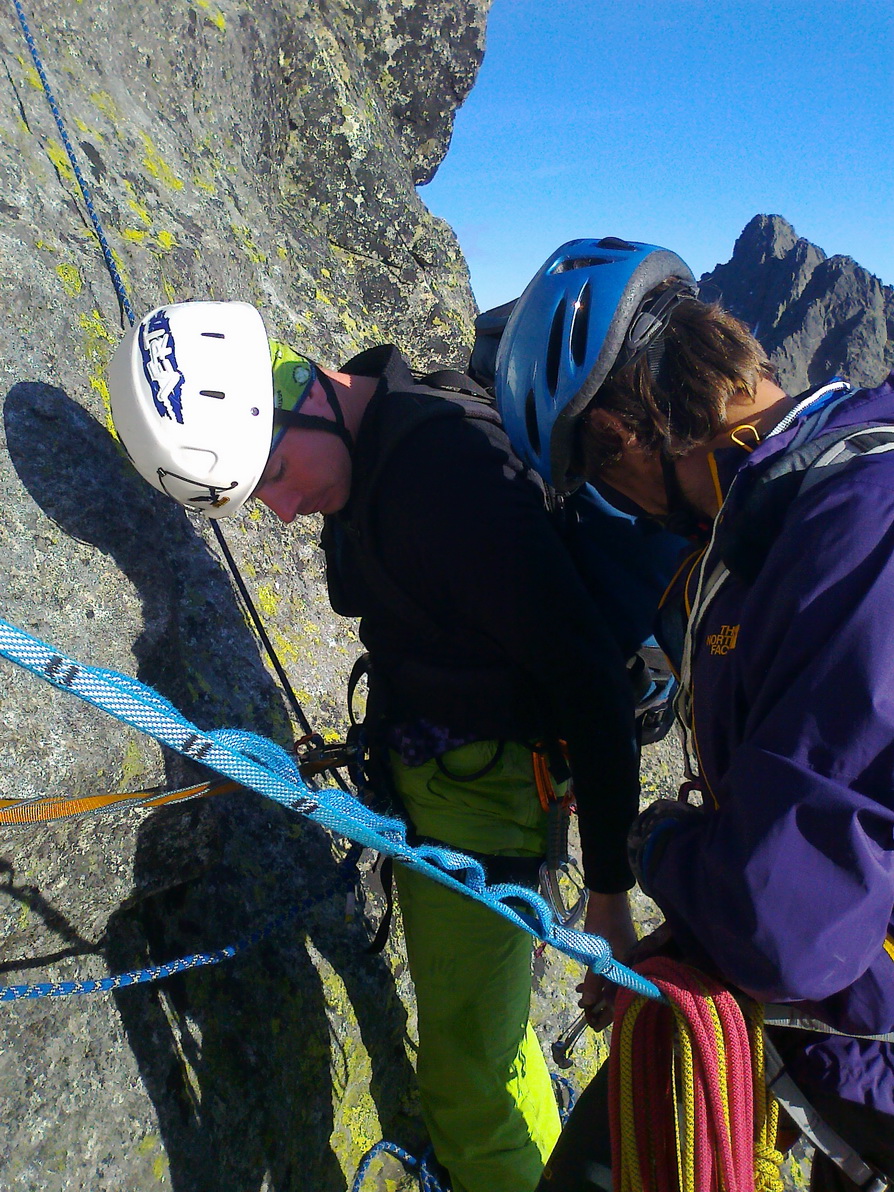 Na exponovaný tretí štand dolieza Sisa a Matúš už hľadá cestu v štvrtej dĺžke. Nie je to celkom jasné. Dĺžka je dlhá, strmá, miniem skoro všetko čo mám kým zaštandujem a zakričím dole na Sisu "Poď!"