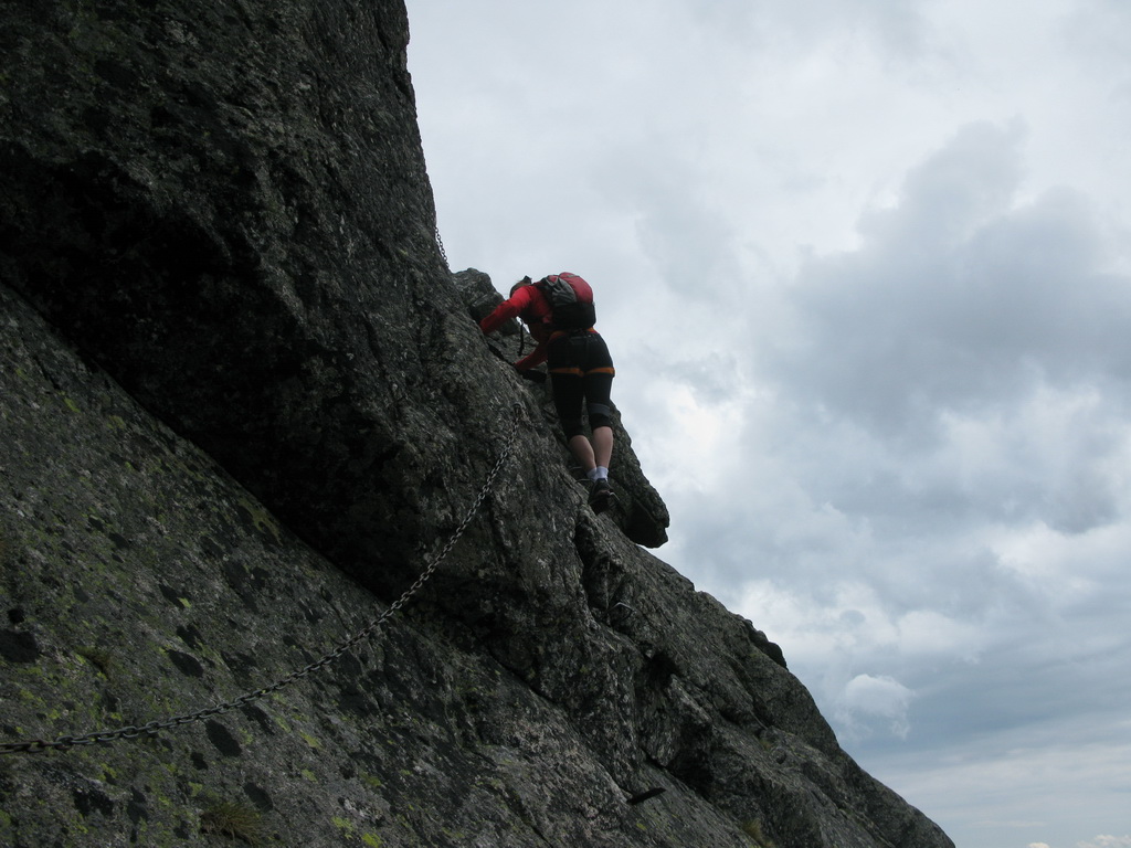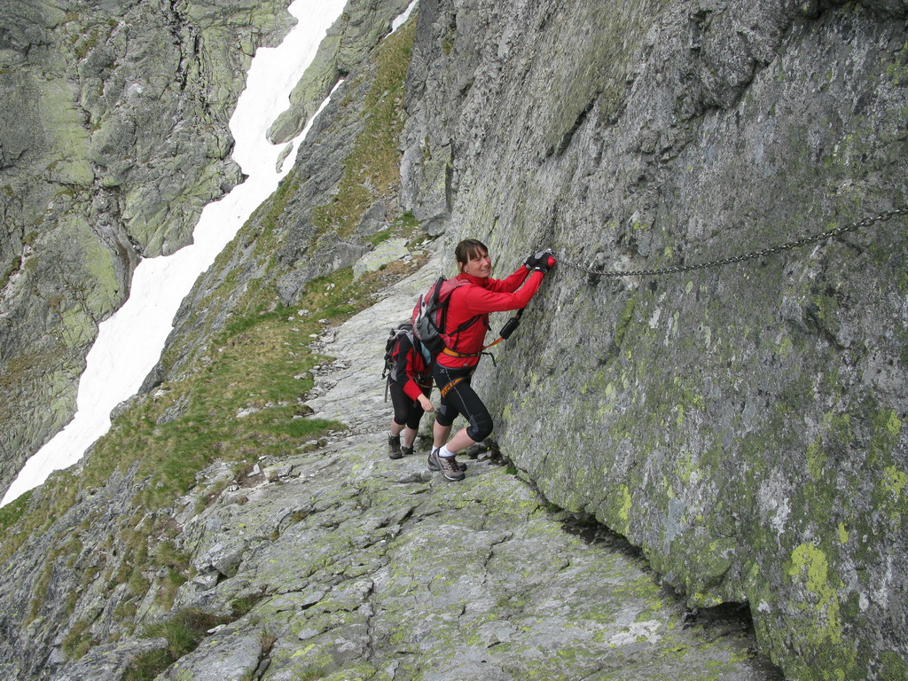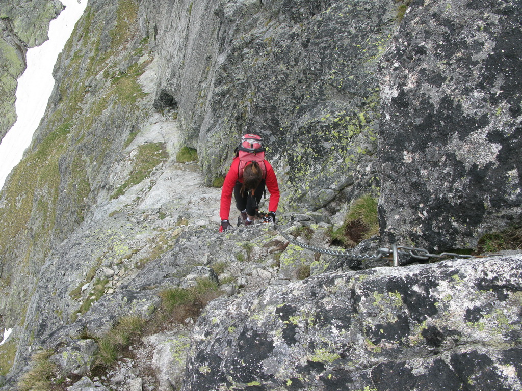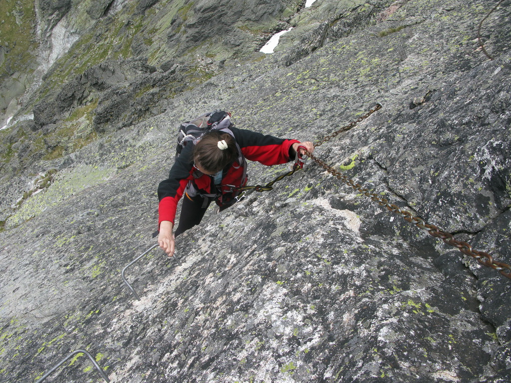 My sme si vybrali túto reťazami a kramlami zaistenú ferratu v jeden nie moc pekný júnový deň. Naším cieľom bolo z Malej Studenej doliny vystúpiť do Téryho kuloáru chodníčkom slúžiacim k nástupu na lezecké túry. Tu sme už na seba obliekli sedačky s feratovými setmi a vystúpili sme ferratou smerom hore na úbočie nad Lomnickým sedlom. Počasie nebolo vhodné na lezenie, tak sme aspoň takto dali pekný a zaujímavý okruh.